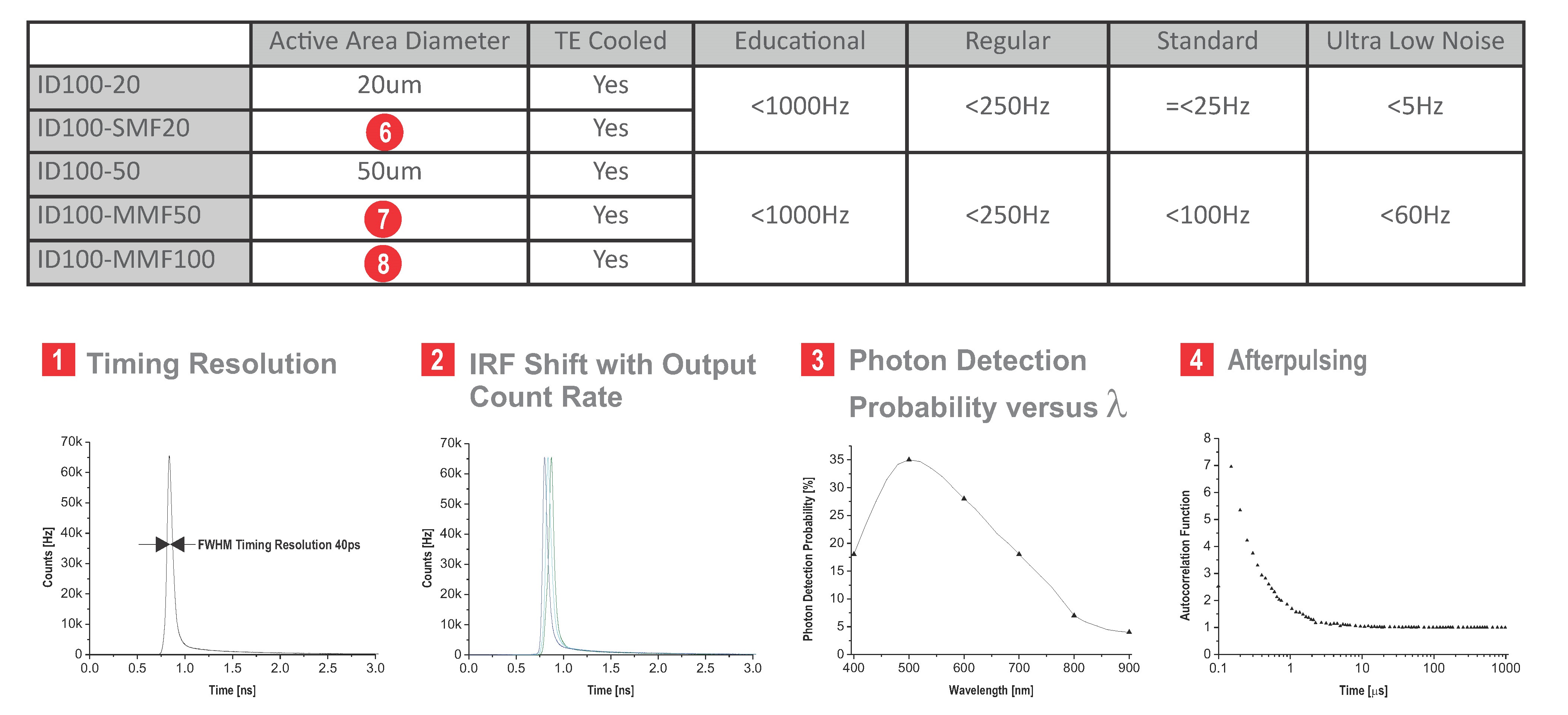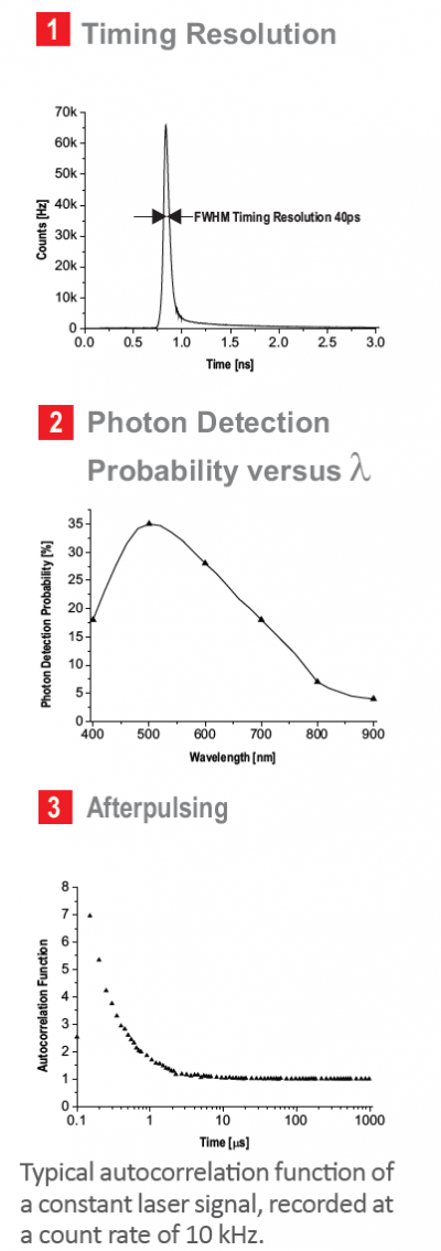 計數型傳統PMT是TCSPC及光子計數實驗中的常用選擇,PMC-150可提供用于不同波段的不同版本。